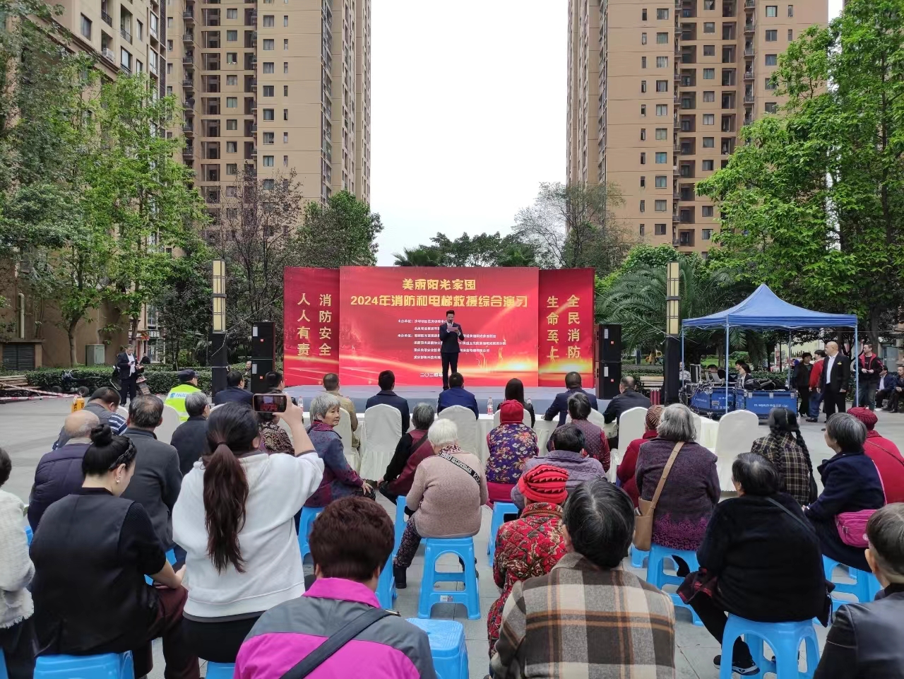美丽阳光家园小区开展2024年度消防和电梯救援综合演习