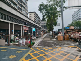 5.关于长期堆放杂物在车位和道路上,时而挡住盲道的问题。经核实,废品回收门店占用人行道进行称重、分拣等业务时,确实遮挡盲道,影响通行。