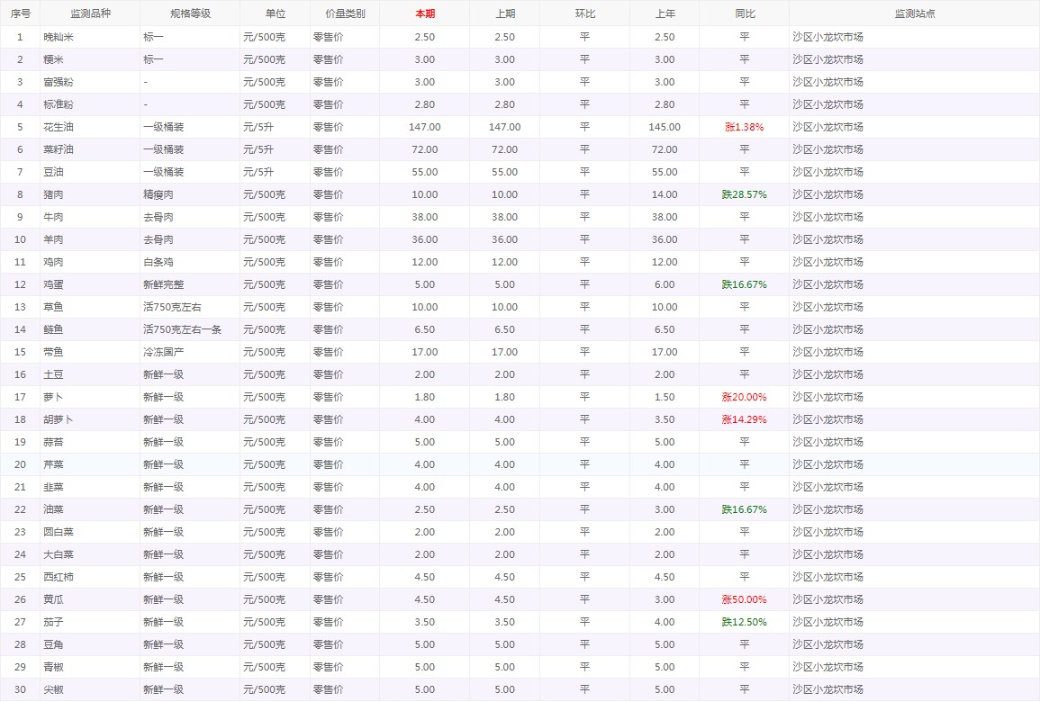 粮油内禽蛋菜水产品等价格应急监测情况(小龙坎农贸市场)采价日期(2025年10月31日)