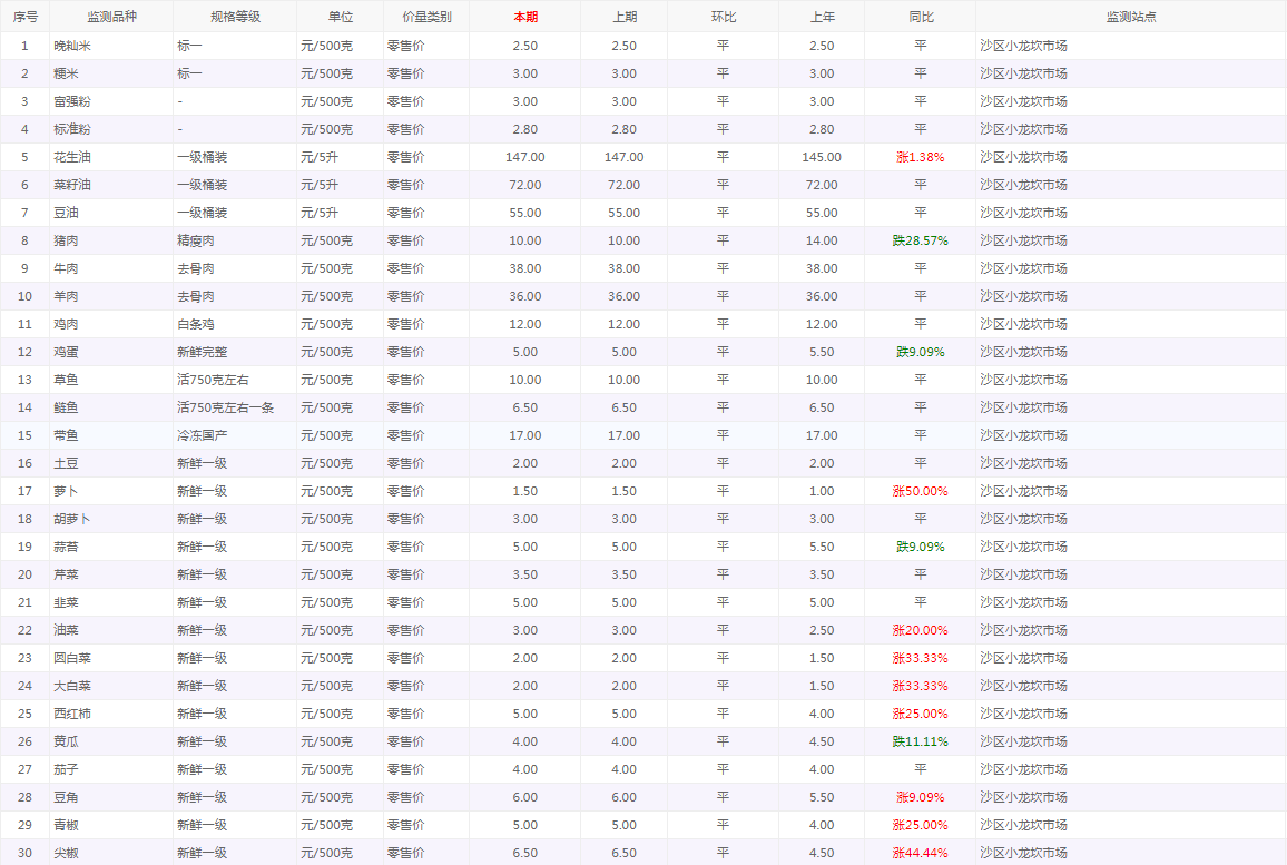粮油内禽蛋菜水产品等价格应急监测情况(小龙坎农贸市场)采价日期(2026年2月12日)