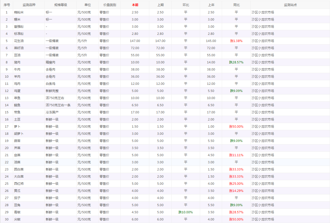 粮油内禽蛋菜水产品等价格应急监测情况(小龙坎农贸市场)采价日期(2026年3月2日)