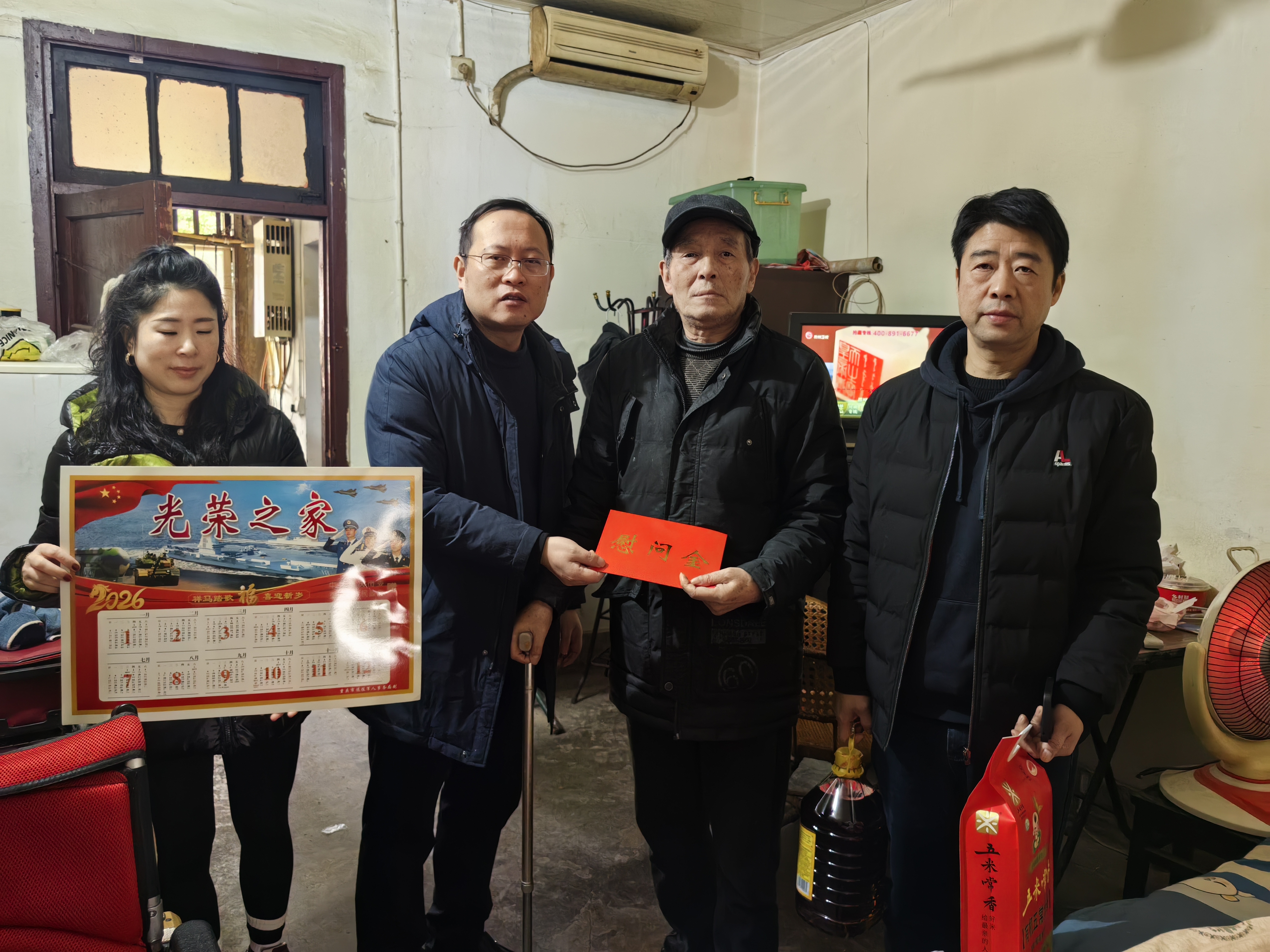 新春佳节将至,为弘扬拥军优属光荣传统,营造关心关爱退役军人的浓厚社会氛围,2月5日上午,街道党工委书记黄鑫带队,前往辖区退役军人陈永亮家中进行走访慰问,向他致以节日的诚挚问候和美好祝福,并送去慰问金及米、油等生活必需品。