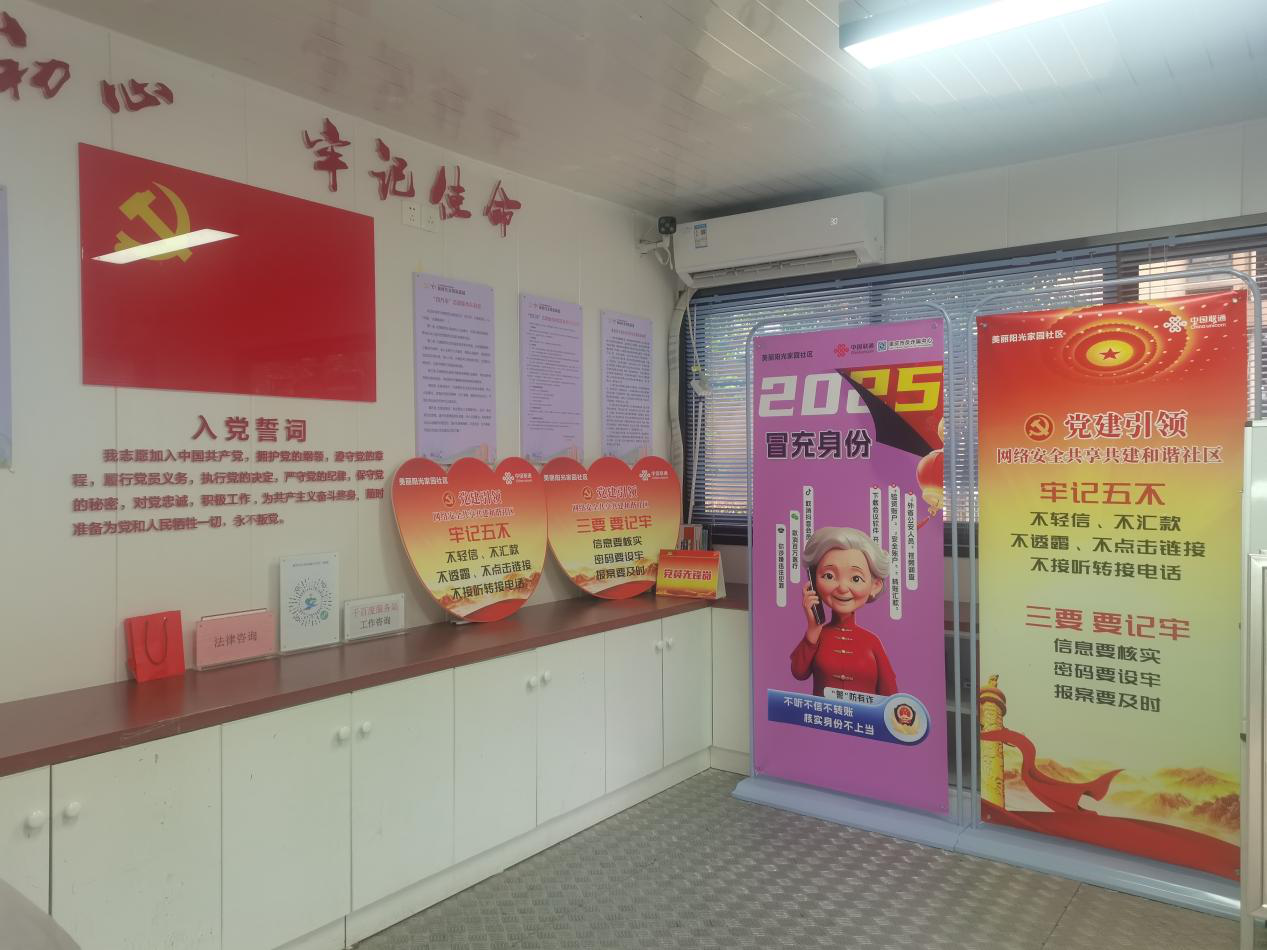 为深入推进井口街道“邻享阳光”15分钟高品质生活服务圈建设,井口街道美丽阳光家园社区创新“党建引领+企居联动”的服务模式,联合中国网络通信有限公司重庆市沙坪坝分公司,依托红岩小屋,增设通讯网络便民服务与反诈知识宣教,切实提升居民生活便利性与网络诈骗的识别和防范能力。