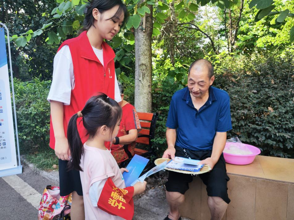 随后,孩子们穿上红马甲,戴上红袖章,化身小小志愿者,在社区工作人员的带领下,走进小区、广场、商铺,用刚刚学到的反诈知识,向居民们认真讲解常见的电信诈骗手段。“爷爷奶奶,要守住自己钱包,不要给陌生人转账哦!”孩子们用稚嫩的声音,提醒居民提高警惕。