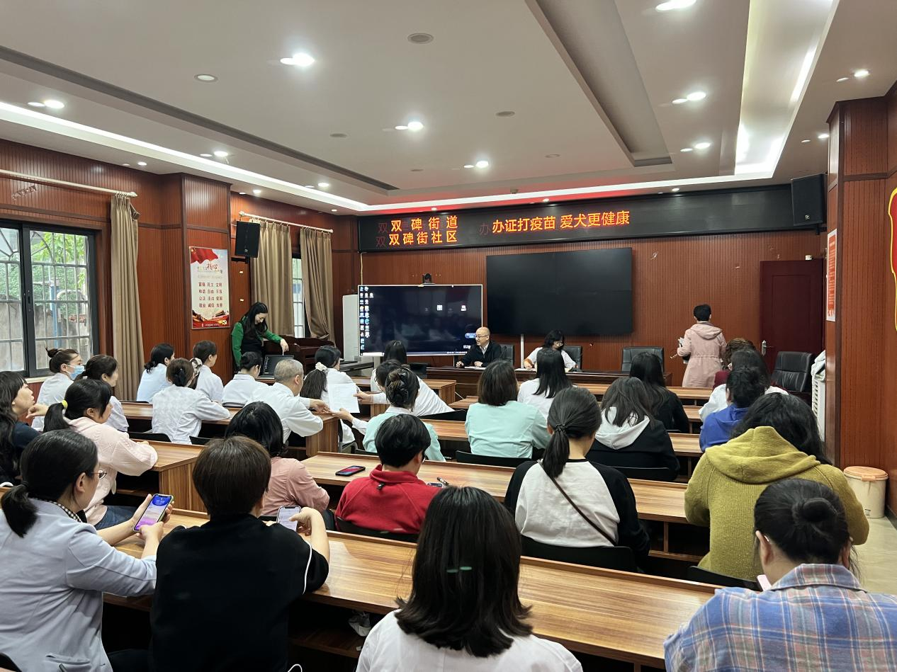 活动现场,社区邀请双碑社区卫生服务中心的医生和志愿者,详细讲解养犬登记办证流程、狂犬病危害及犬只免疫重要性等知识。医生及志愿者耐心解答居民疑问,提醒居民定期带犬只接种疫苗,倡导依法养犬、文明养犬。