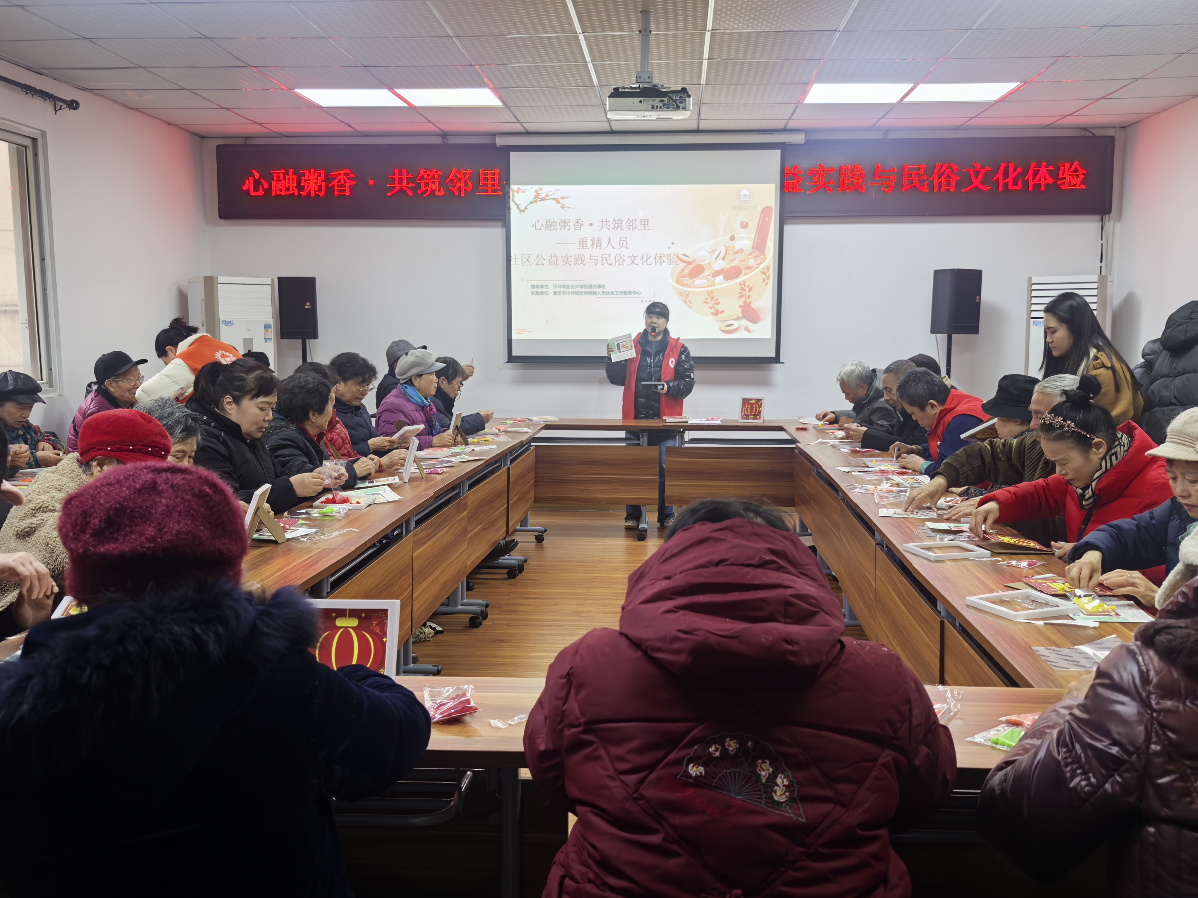 1月22日,团结坝社区热闹非凡,一场温馨且富有创意的腊八节活动在此欢乐开展,吸引众多居民热情参与。
