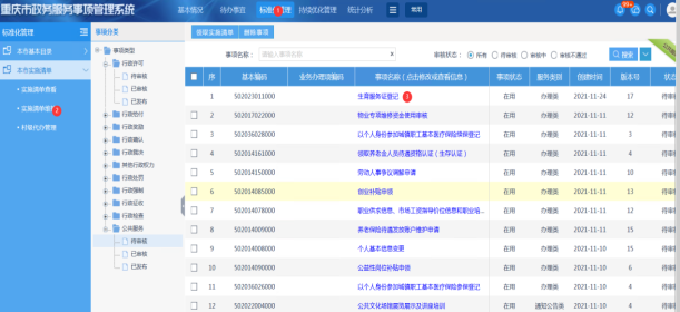 6、区县管理员审批过后,选择生育服务登记进行发布,至此完成事项配置。