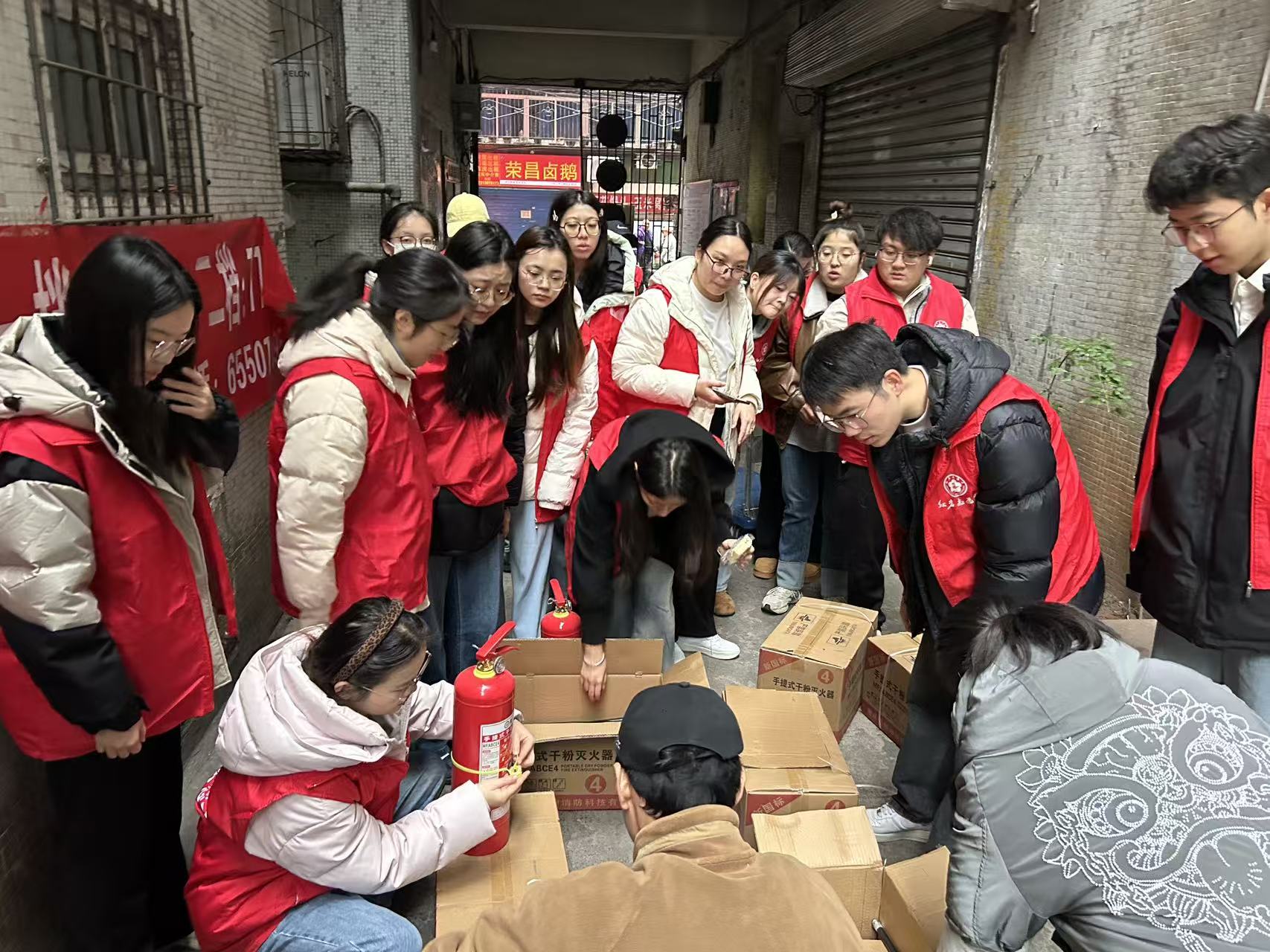 为消除老旧小区消防安全隐患,2026年1月22日,天陈路社区共青团组织青年志愿者,在庆泰花园小区开展灭火器更换志愿服务。