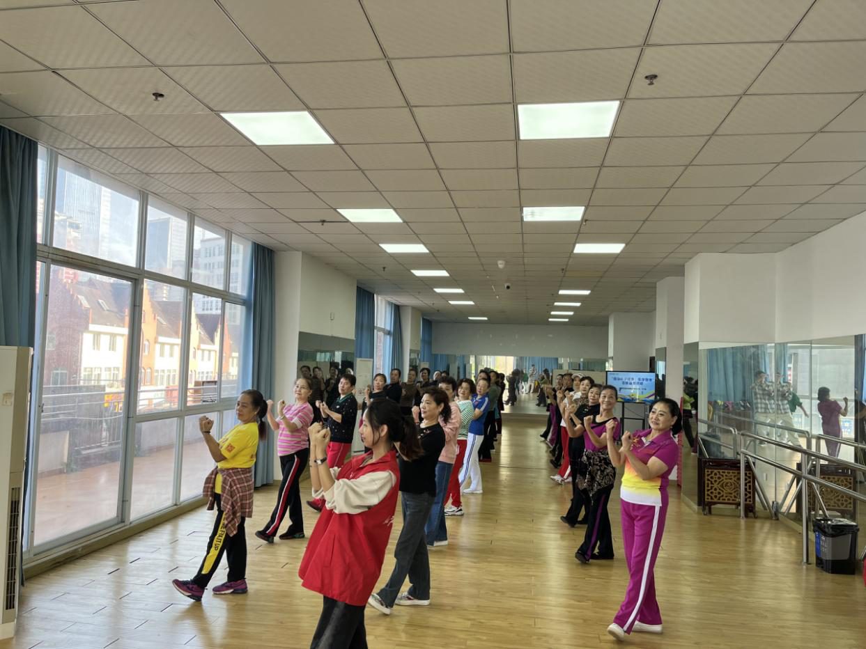 活动开始,居民们跟随节拍,上下伸展手臂,左右转身,拉伸腿部,有节奏地跳起了健身操。不一会儿,伴随着音乐节奏,大家已经可以合着音乐的节拍舞动起来,一起享受运动带来的快乐。