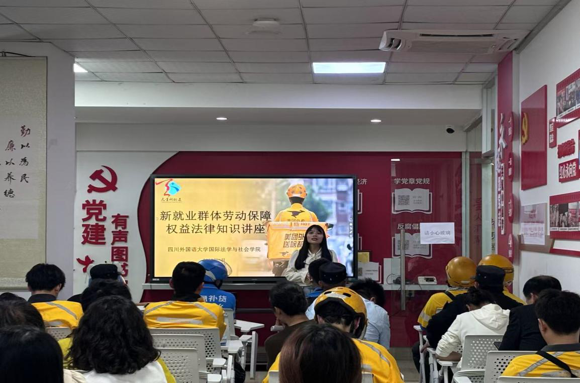4月10日,天星桥街道特邀四川外国语大学国际法学与社会学院讲师,讲授新就业形态劳动者劳动保障权益相关法律法规知识,30余名新就业群体参加。