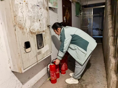 渝碚路街道白鹤岭社区更换老旧小区灭火器