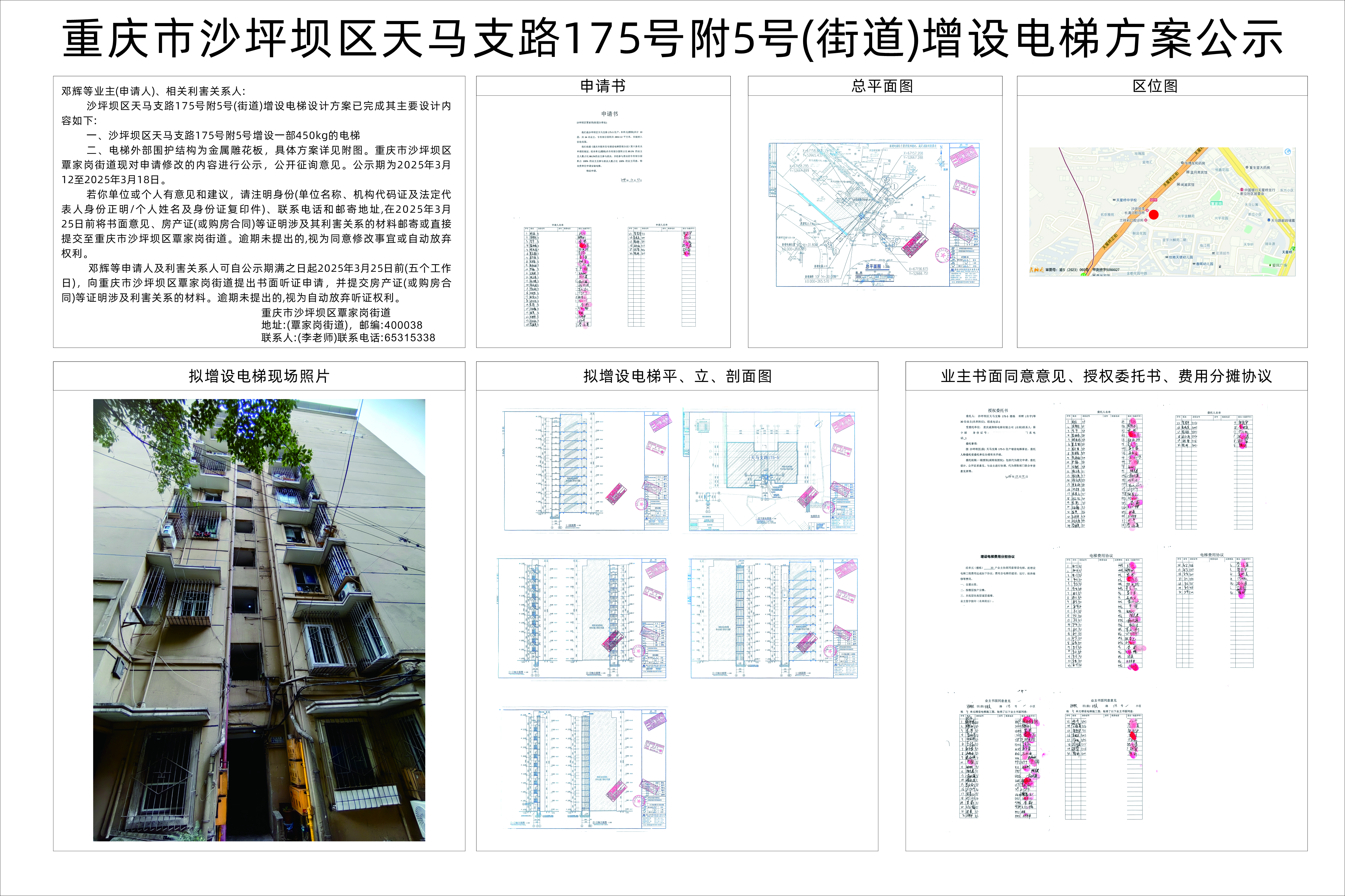 重庆市沙坪坝区天马支路175号附5号(街道)增设电梯方案公示