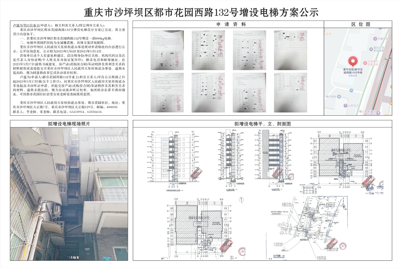 重庆市沙坪坝区都市花园西路132号增设电梯方案公示
