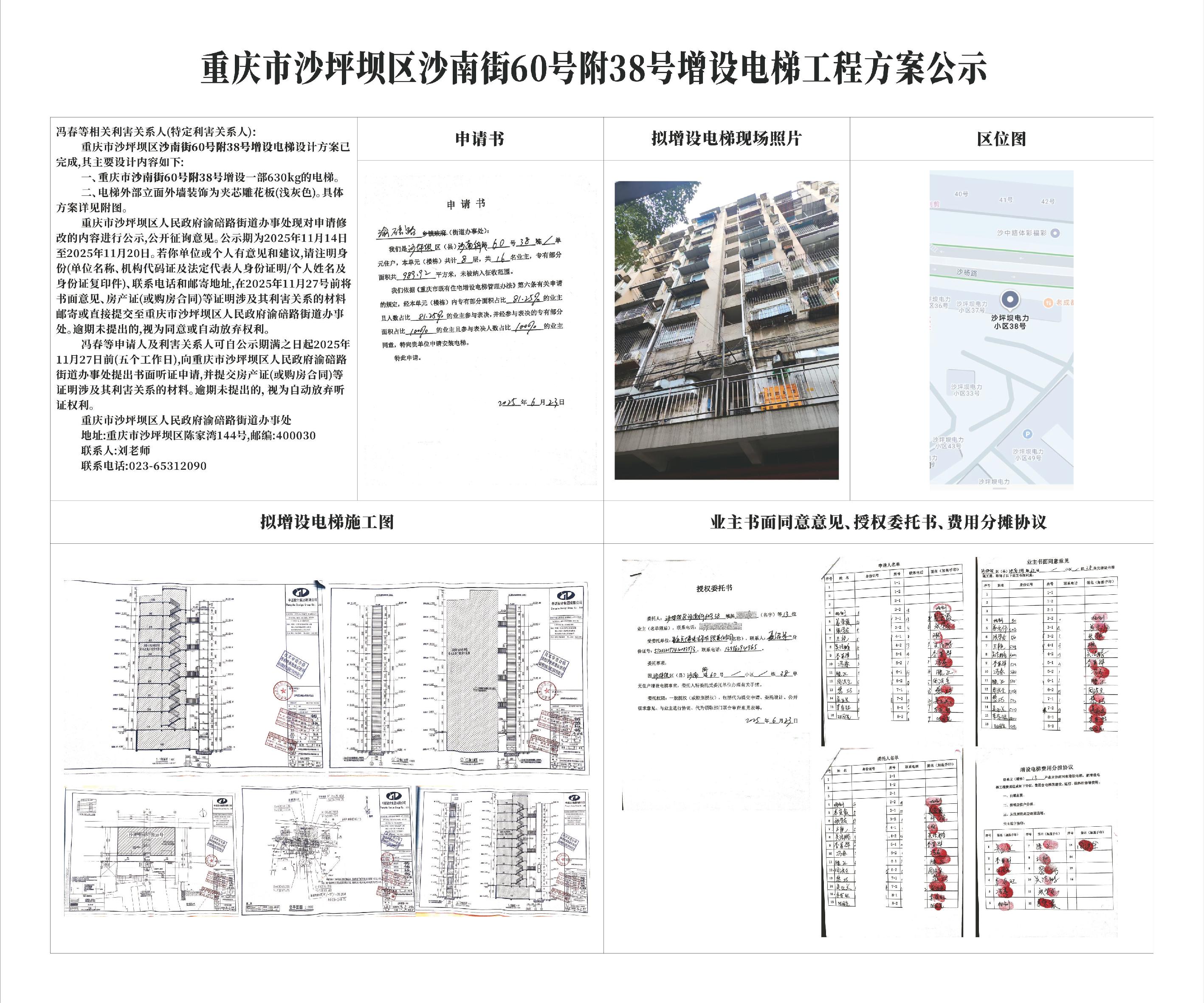 重庆市沙坪坝区沙南街60号附38号增设电梯方案公示