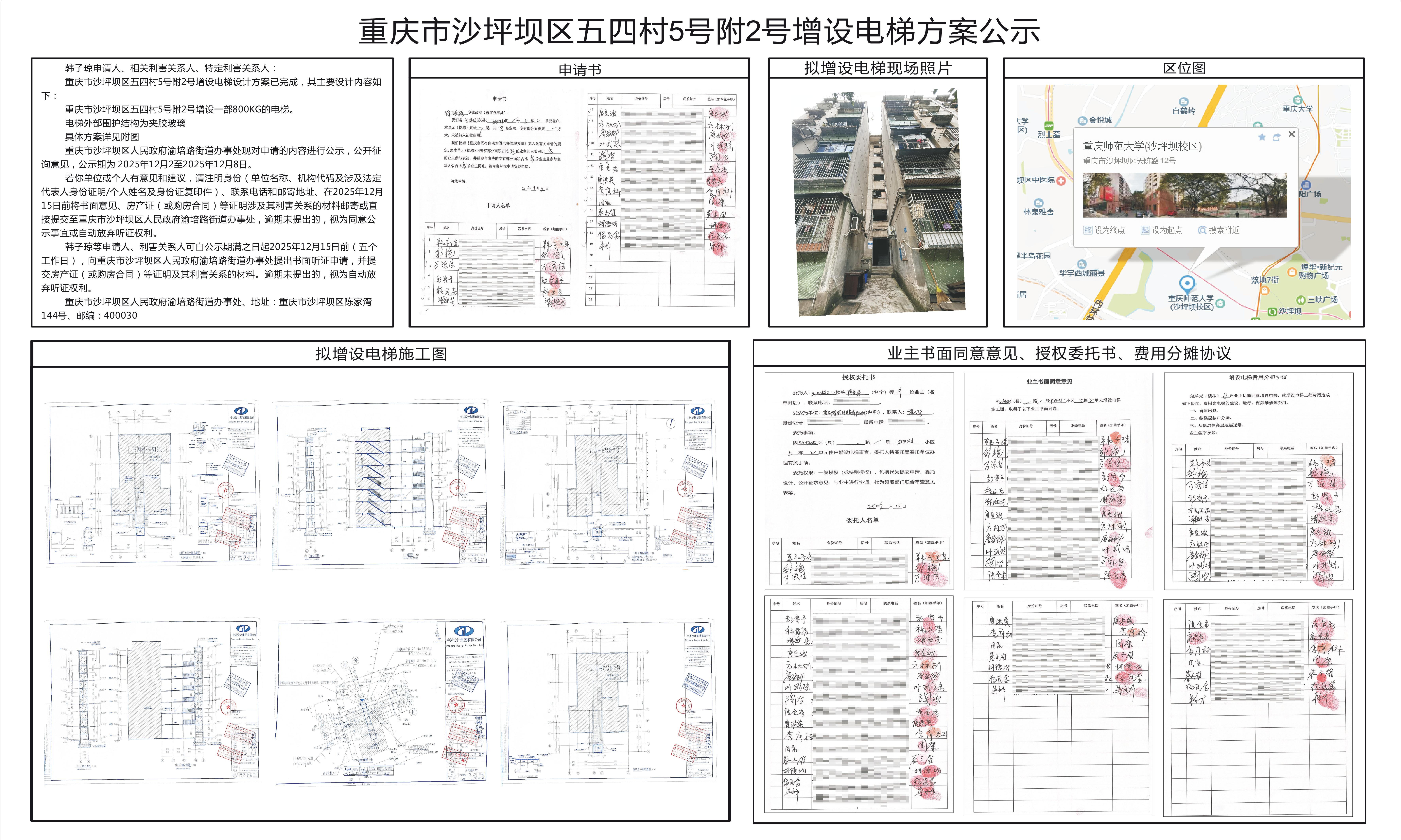 重庆市沙坪坝区五四村5号附2号增设电梯方案公示