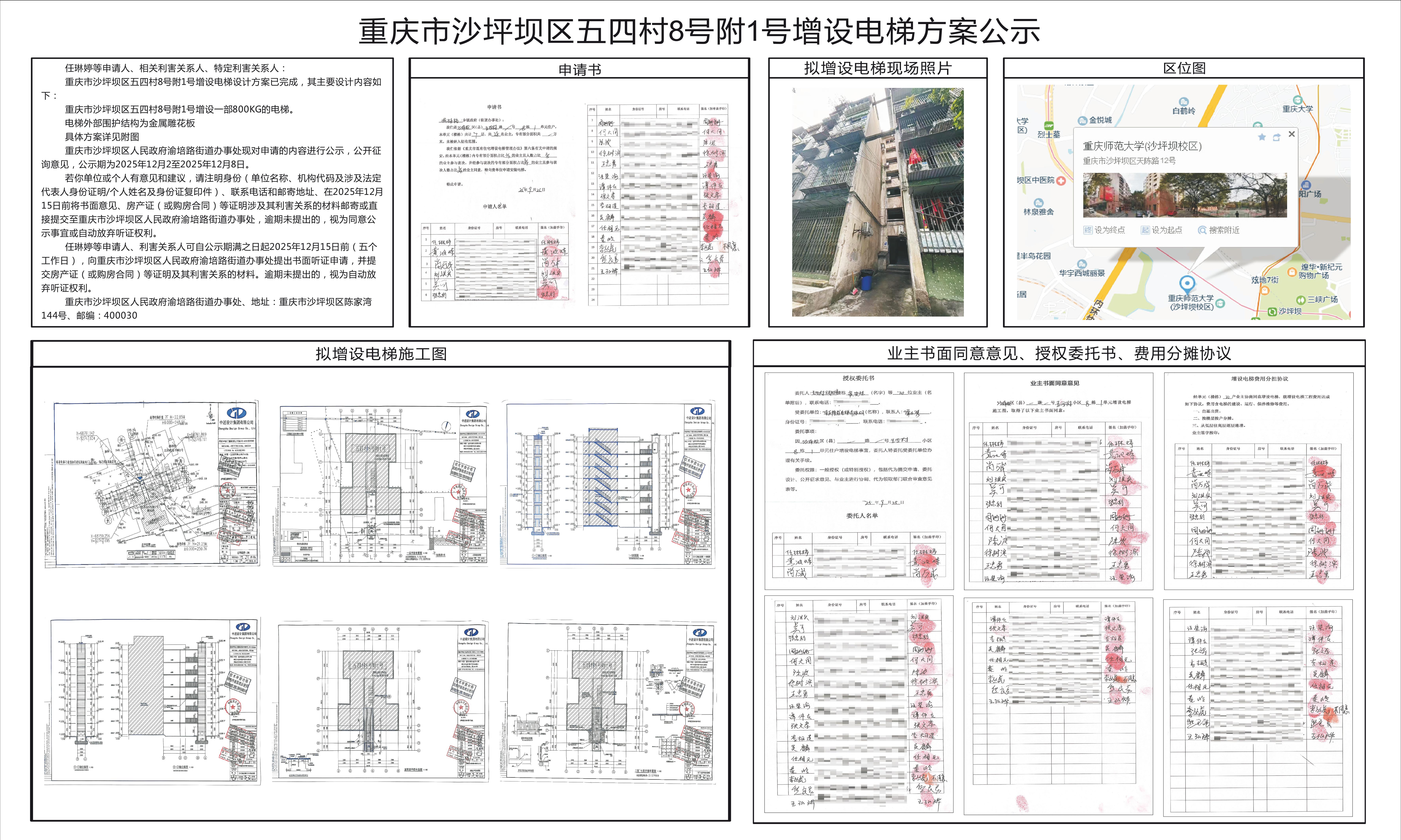重庆市沙坪坝区五四村8号附1号增设电梯方案公示