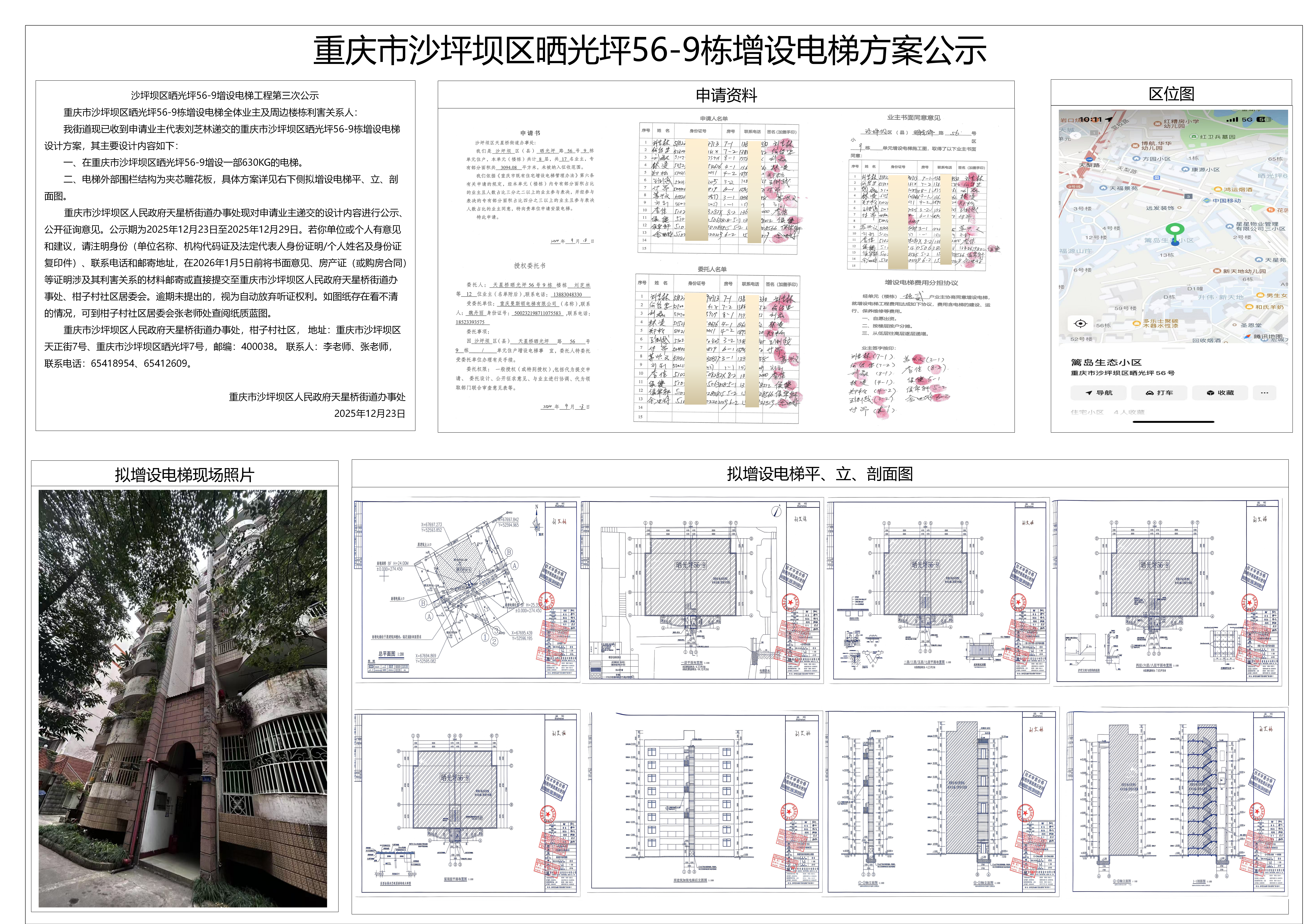 重庆市沙坪坝区天星桥正街123-5号增设电梯方案公示、重庆市沙坪坝区晒光坪56-9栋增设电梯方案公示