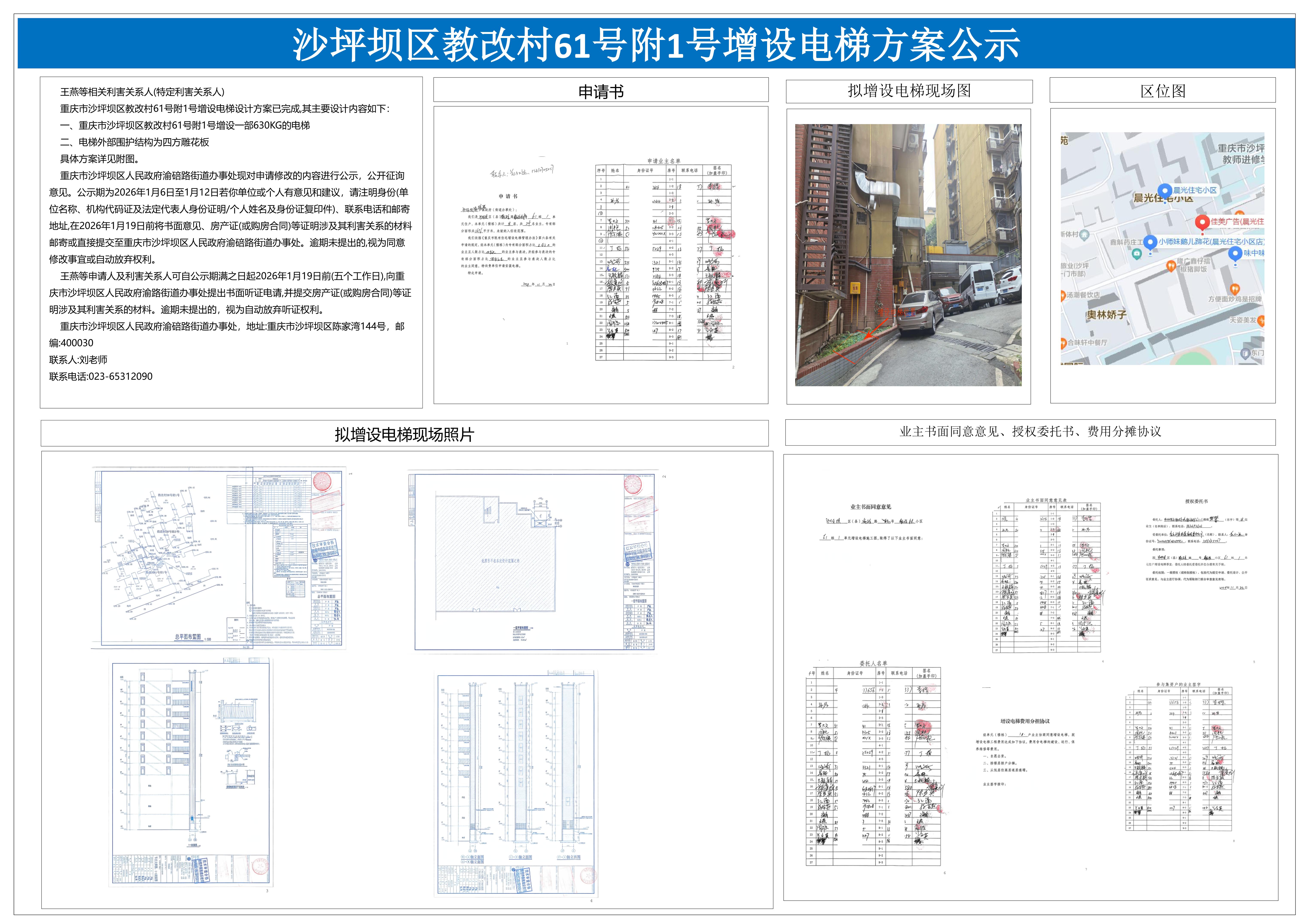 重庆市沙坪坝区教改村61号附1号增设电梯方案公示