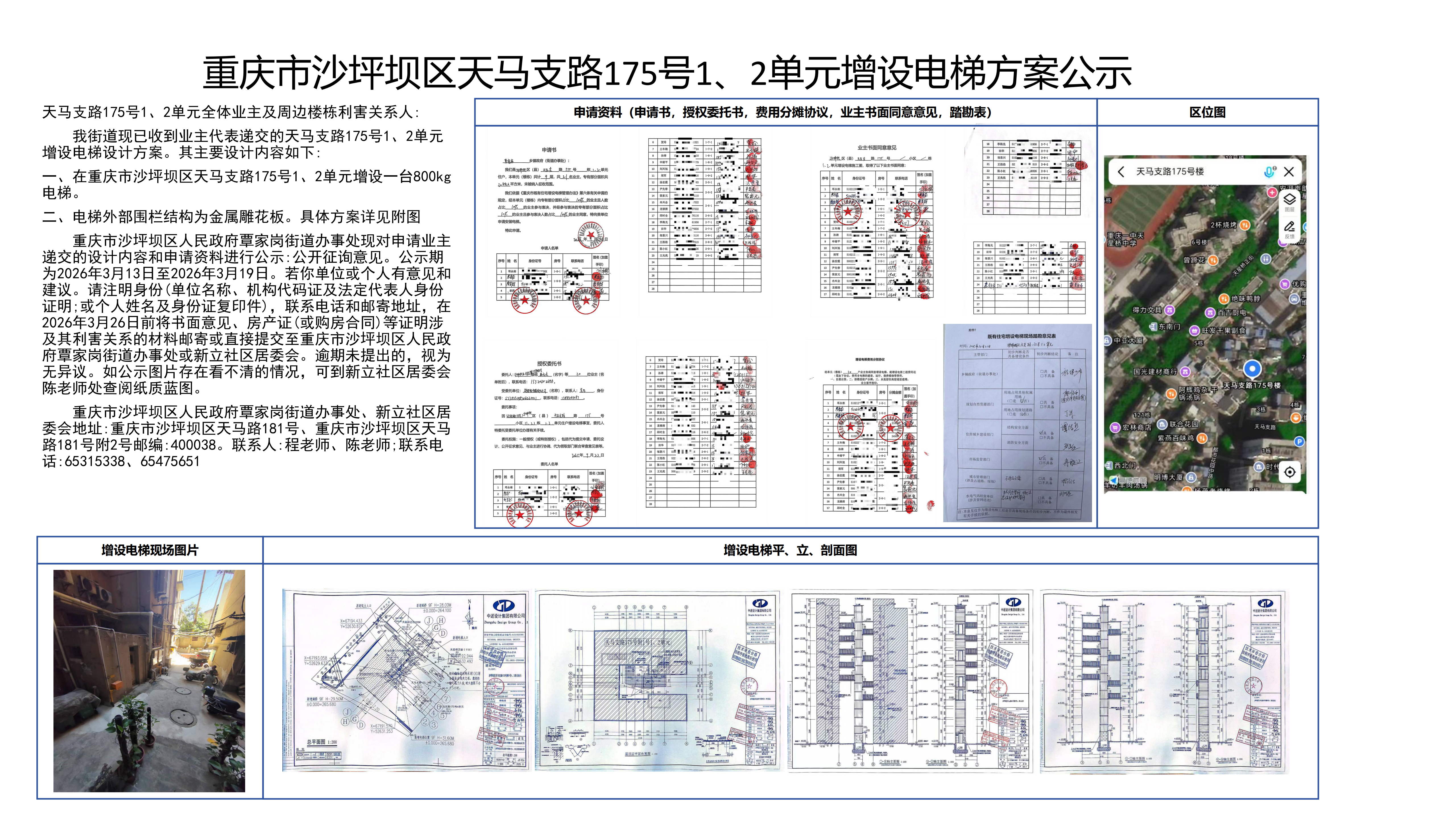重庆市沙坪坝区天马支路175号1、2单元增设电梯方案公示
