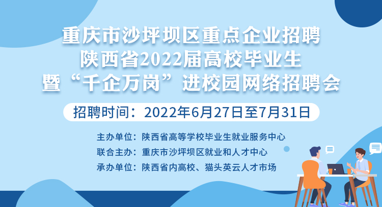 为深入贯彻党中央、国务院关于促进高校毕业生就业创业决策部署,认真落实重庆市关于稳就业保民生的工作要求,沙区人力社保局根据区人才工作要求和助企纾困具体安排,协同陕西省高等学校毕业生就业服务中心,自6月底起,联合陕西省省内93所高校共同举办了2022年沙坪坝区重点企业进校园(陕西省)网络招聘活动。相关招聘将持续至7月底。