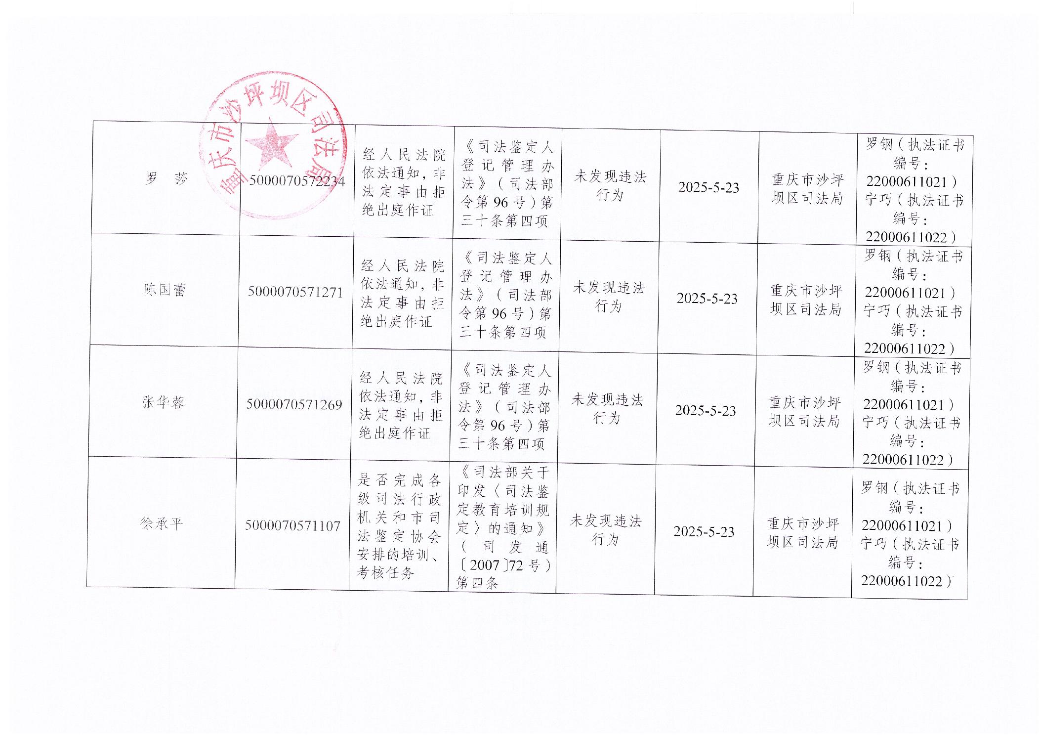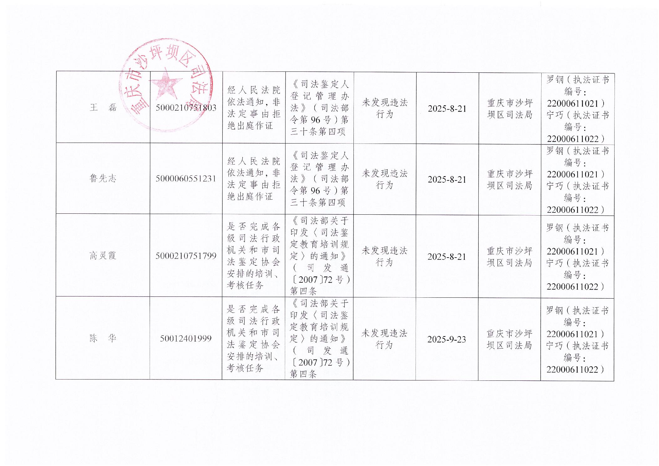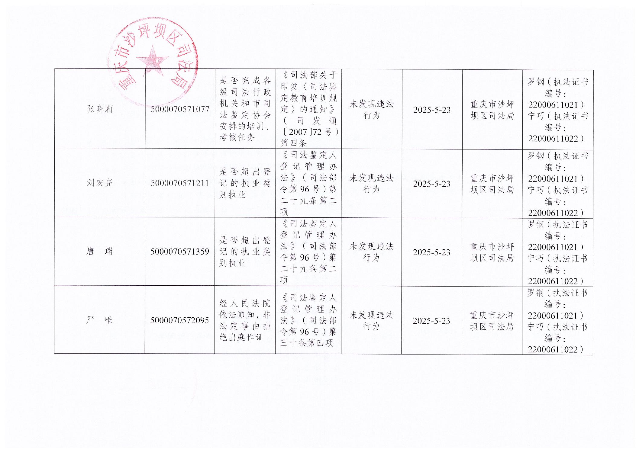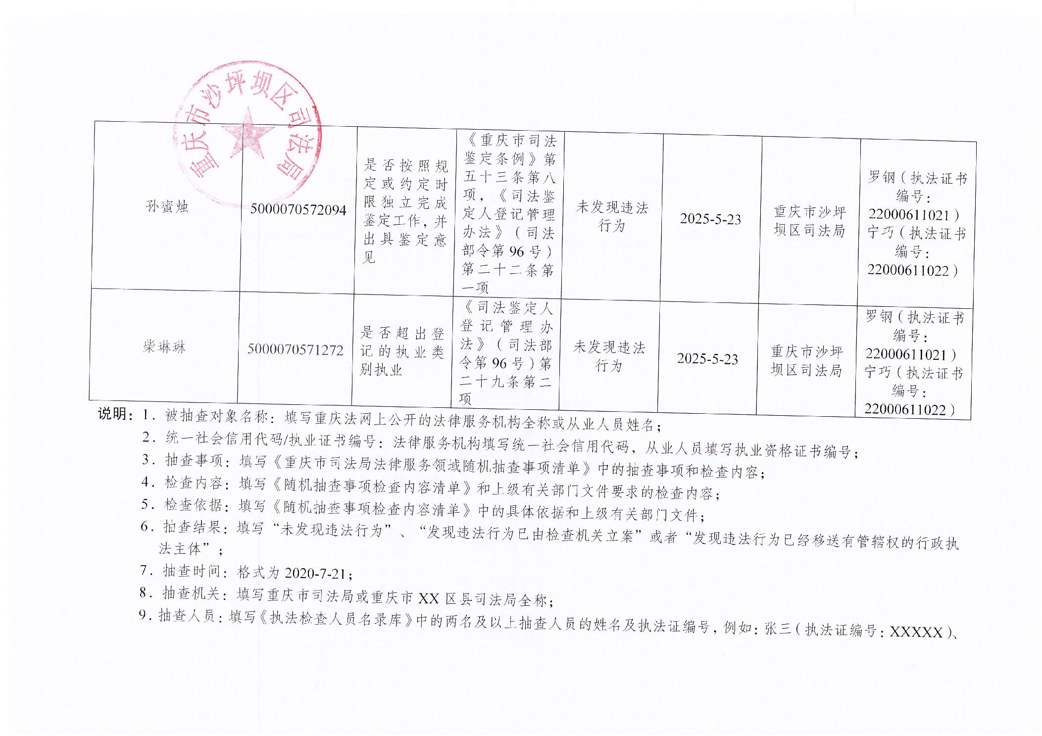重庆市沙坪坝区司法局开展2025年度“双随机、一公开”检查工作结果公示(鉴定机构、鉴定员)